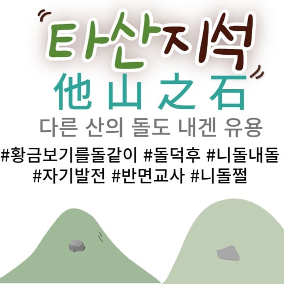 타산지석(他山之石)은 우리 일상에서 자주 사용되는 고사성어로, 다른 사람의 경험과 교훈을 통해 자신의 발전을 이루는 지혜를 담고 있습니다. 이 글에서는 타산지석의 뜻과 유래, 그리고 그 의미를 반면교사와 비교하며 설명하고자 합니다.